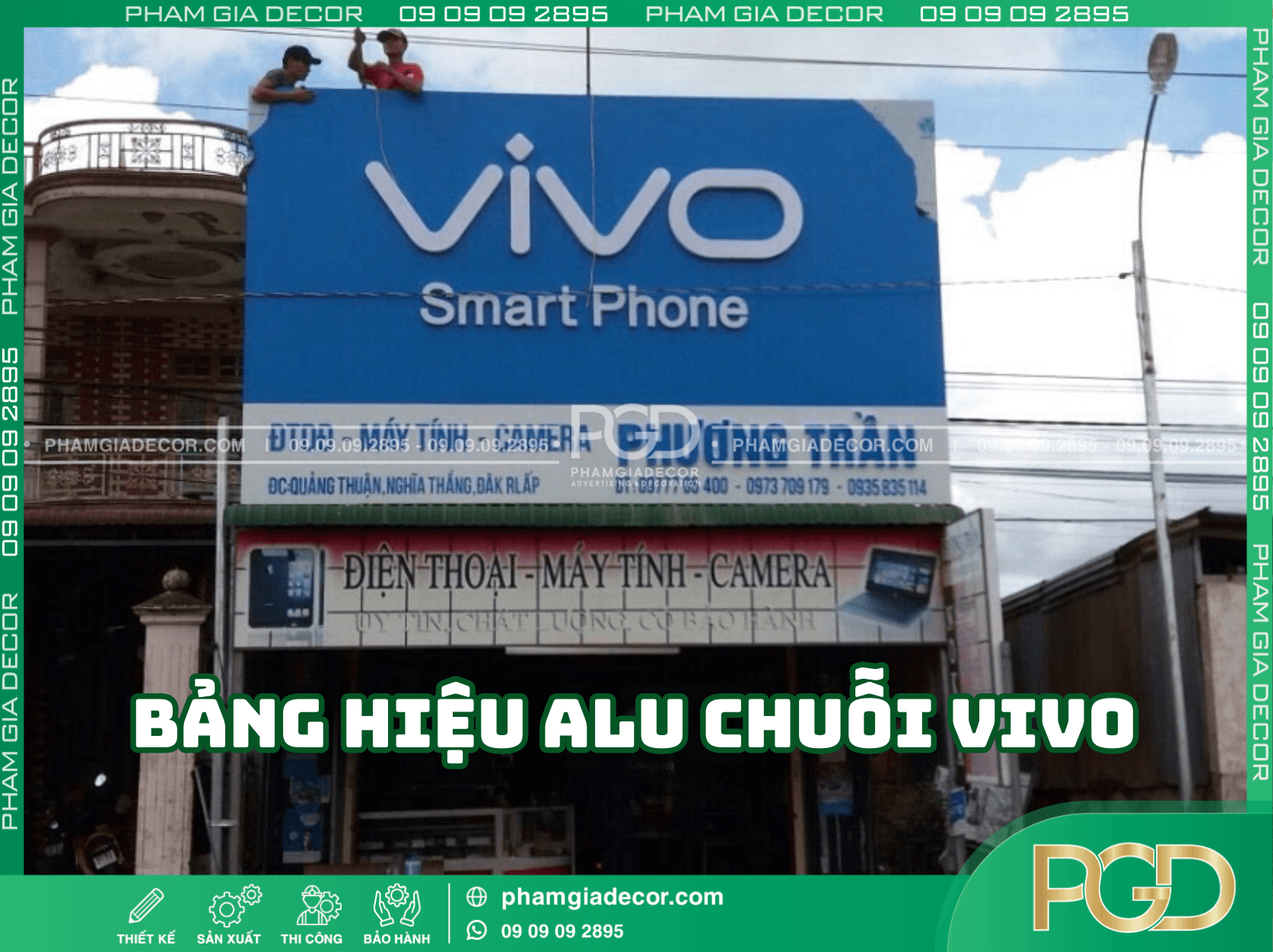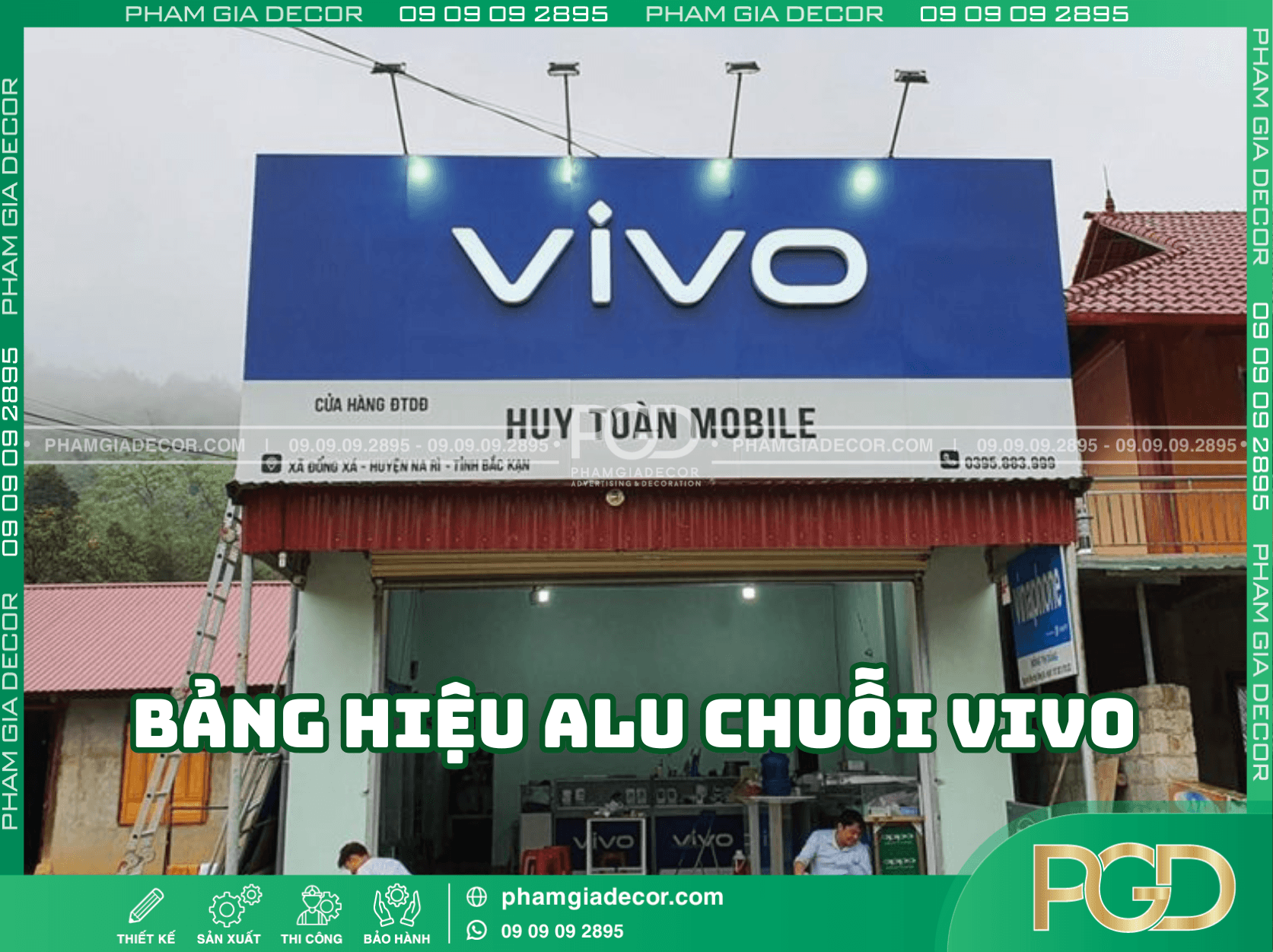 Bảng hiệu alu chuỗi ViVo là đại diện cho hình ảnh công nghệ và sự chuyên nghiệp. Việc đầu tư vào chất lượng thi công, sự đồng bộ và công nghệ chiếu sáng hiện đại là chìa khóa để củng cố vị thế thương hiệu. Phạm Gia Decor, với kinh nghiệm và sự chuyên nghiệp, cam kết mang đến cho khách hàng sản phẩm chất lượng cao nhất cùng dịch vụ tận tâm nhất.