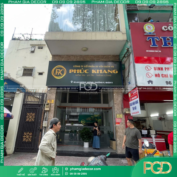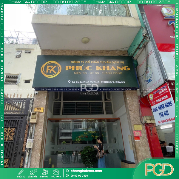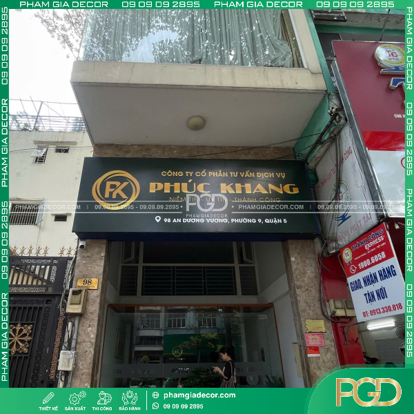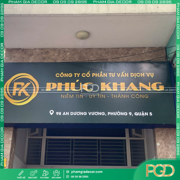 Nếu bạn đang kinh doanh tại khu vực An Dương Vương, Quận 5 và muốn sở hữu một bảng hiệu công ty vừa sang trọng, vừa bền đẹp với kỹ thuật căng bạt tràn viền độc đáo như của Công Ty Phúc Khang, hãy để Phạm Gia Decor hiện thực hóa ý tưởng của bạn.