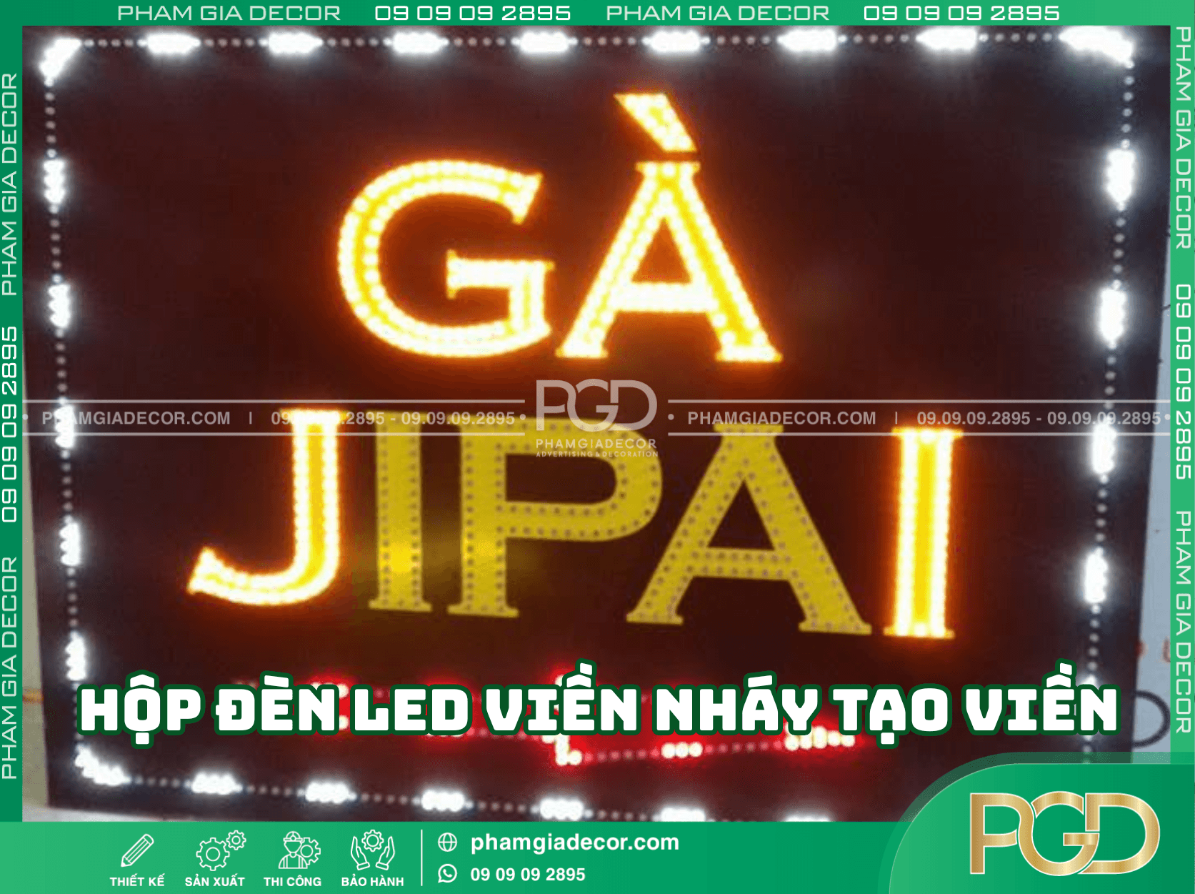 Hộp đèn LED viền nháy tạo viền là công cụ quảng cáo thu hút, giúp cửa hàng của bạn nổi bật giữa đám đông. Với chi phí hợp lý và hiệu quả thị giác vượt trội, đây là khoản đầu tư thông minh cho mọi loại hình kinh doanh. Hãy kết nối với Phạm Gia Decor qua hotline 09.09.09.2895, để thương hiệu của bạn tỏa sáng rực rỡ.