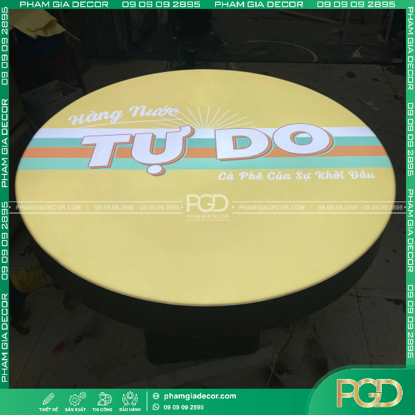 Trong thế giới cạnh tranh của các quán cà phê, việc sở hữu một biểu tượng thương hiệu độc đáo và nổi bật là chìa khóa để thu hút khách hàng. Phạm Gia Decor tự hào giới thiệu dự án Hộp Đèn Mica Hút Nổi In UV với đường kính 80cm, làm logo mặt tiền cho Quán Cafe Tự Do.