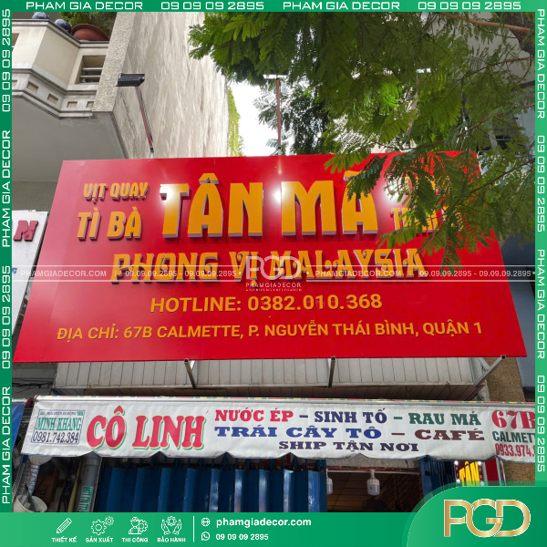 Làm bảng hiệu không chỉ đơn thuần là một công cụ quảng bá mà còn là gương mặt đại diện cho mỗi doanh nghiệp. Đối với Tiệm Vịt Quay Tì Bà Tân Mã nằm tại một trong những quận sầm uất nhất của thành phố – Quận 1, bảng hiệu trở thành một biểu tượng không thể thiếu trong việc thu hút và giữ chân khách hàng. Đây cũng là một trong những dự án làm bảng hiệu tại Quận 1 của Phạm Gia Decor. Thiết kế bảng hiệu cho tiệm không chỉ cần đáp ứng các tiêu chí thẩm mỹ, mà còn phải đảm bảo yếu tố kỹ thuật và độ bền lâu dài. Dưới đây, chúng ta sẽ tìm hiểu về dự án bảng hiệu Alu độc đáo này.