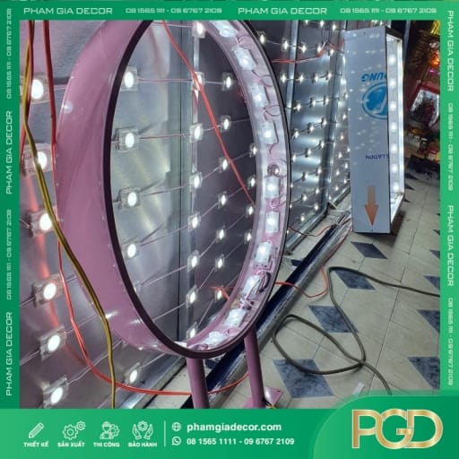 Kết hợp đèn LED hiện đại giúp bảng hiệu rực rỡ và thu hút hơn, đặc biệt vào ban đêm.