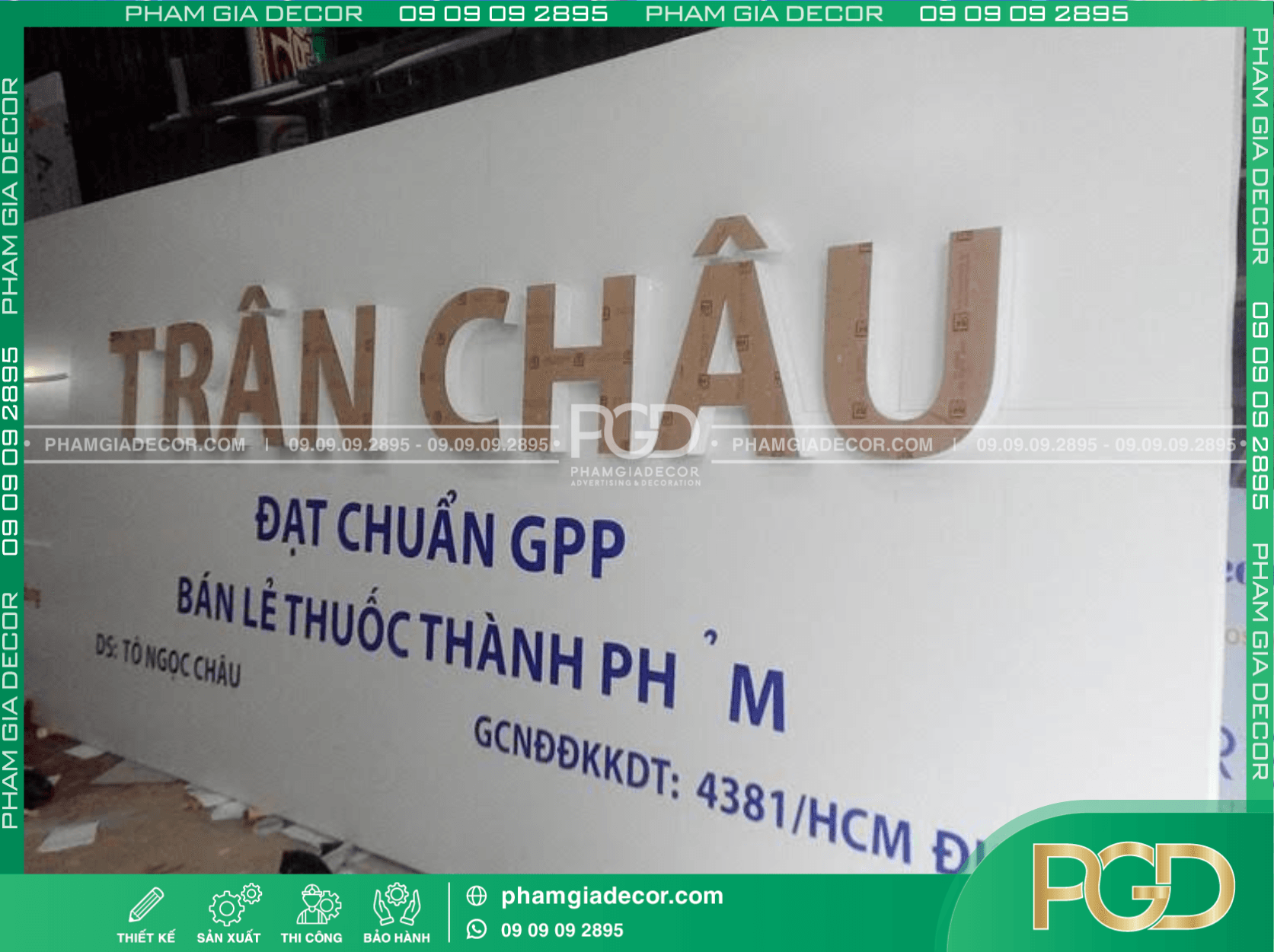 Thi công chuỗi bảng hiệu cho nhà thuốc đòi hỏi vừa chuẩn quy định, vừa đồng bộ nhận diện thương hiệu. Phạm Gia Decor khảo sát từng mặt bằng, thiết kế theo chuẩn màu xanh – trắng y tế, bố cục rõ tên nhà thuốc, GPP, dược sĩ phụ trách, địa chỉ.
